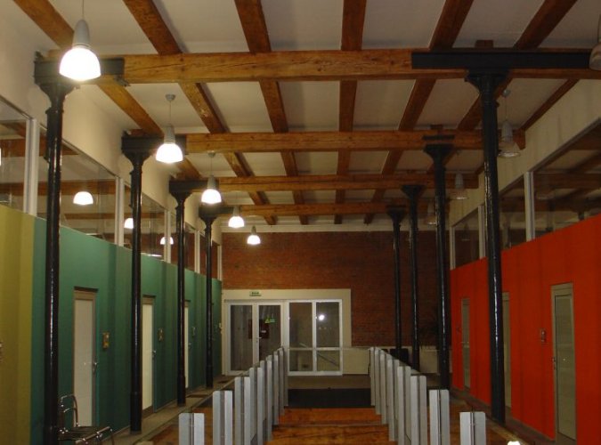 | Při rekonstrukci zachovány původnílitinové sloupy a dřevěné stropy. | |